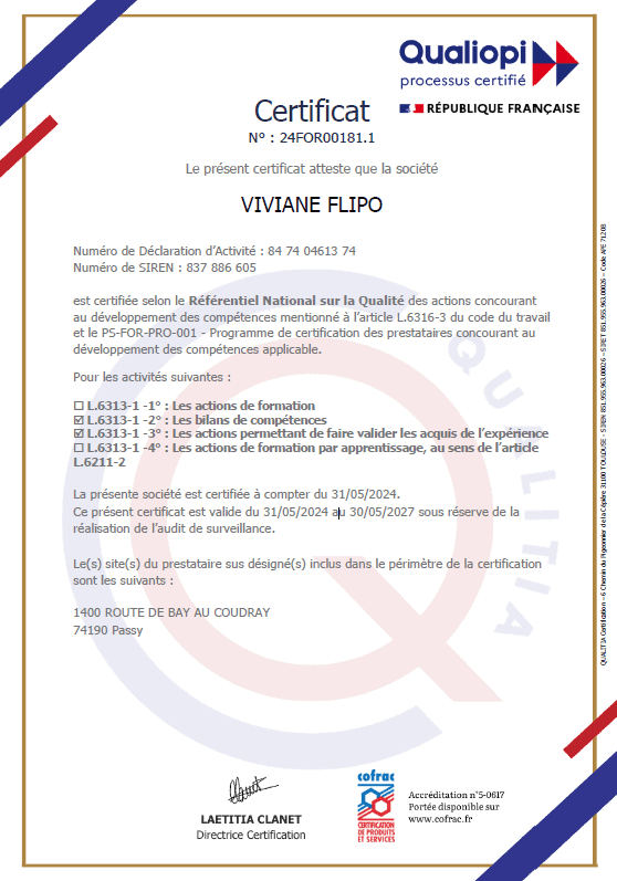 - La préparation et l’accompagnement à la VAE (Validation des acquis de l’expérience)